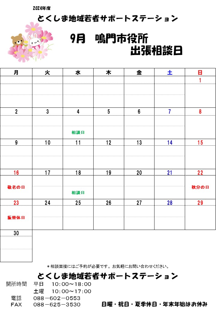 9月 鳴門サテライト相談日のお知らせです。