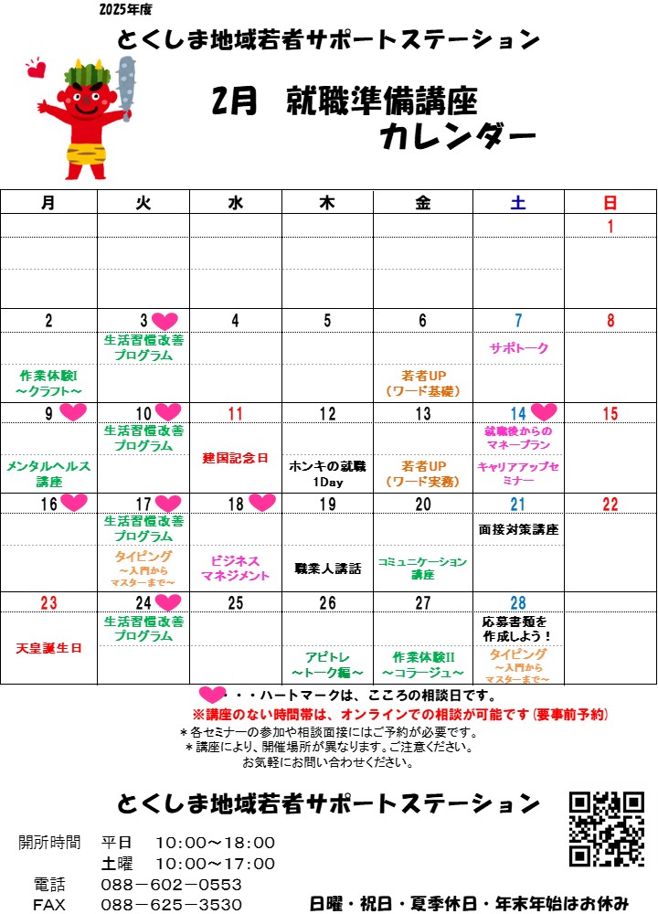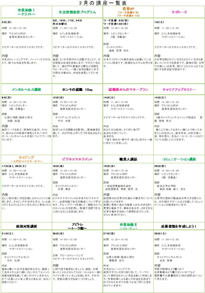 2月の講座のお知らせ